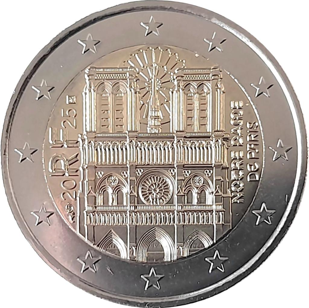 La pièce de 2 euros commémorative émise par la France en 2025 met à l’honneur Notre-Dame de Paris, monument emblématique du patrimoine français et mondial.
